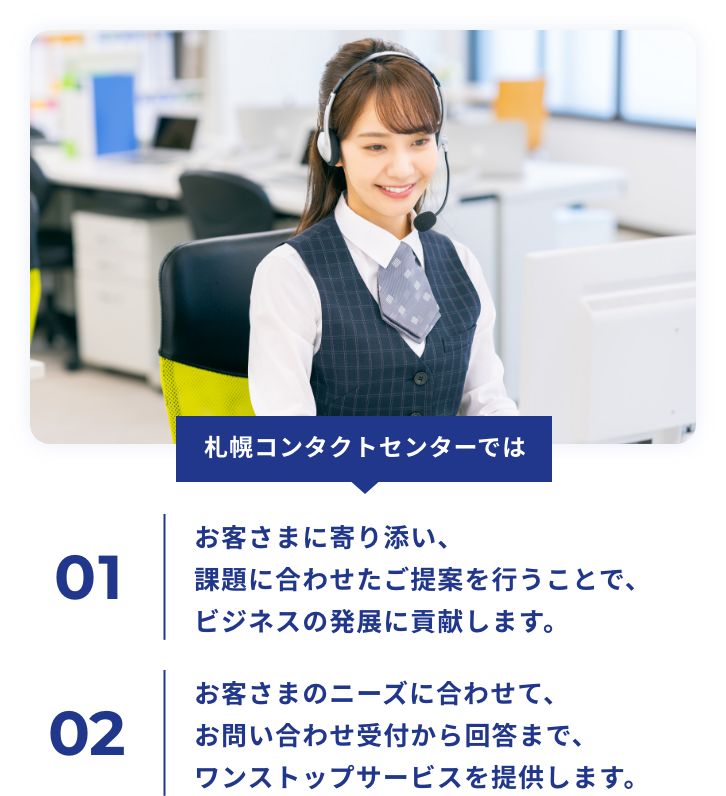 札幌コンタクトセンターは、【日立システムズ×日立システムズフィールドサービス】と北海道日立システムズが連携した日立グループのコンタクトセンターです。
