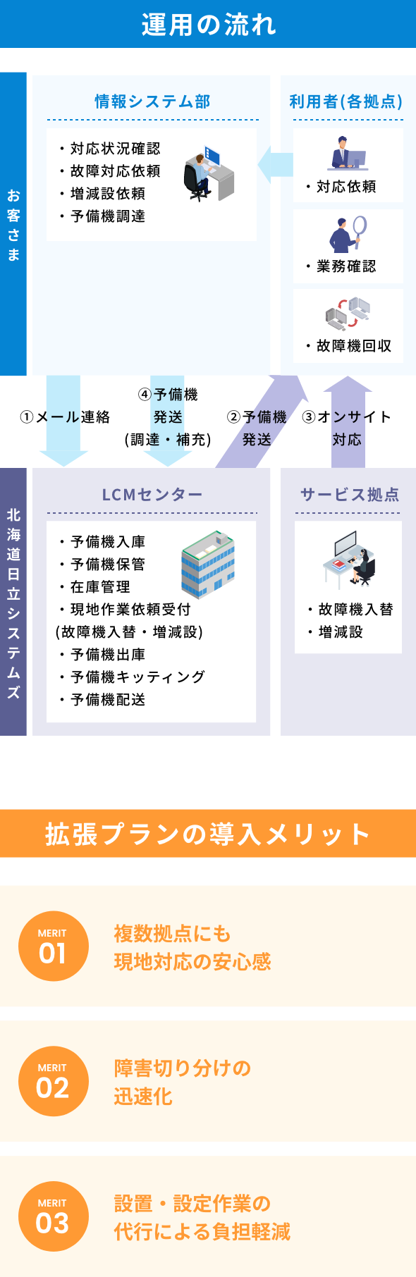 北海道日立システムズのLCM(ライフサイクルマネジメント)サービスは最小契約台数50台から対応可能。